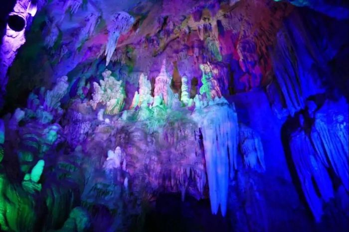 蓟州溶洞发育于中、上元古界长城系洪水庄组白云岩地层,距今约12亿年。经过国家地质部门的勘探测算,其可开发空间达百万平方米,面积之大居华北地区之首。溶洞一期开发约3万平方米,洞内全长1200米,拥有联通三级水平的溶洞系统,其中最突出的景观有28处之多。洞内景观晶莹剔透,千姿百态,绚丽多姿,令人流连忘返。