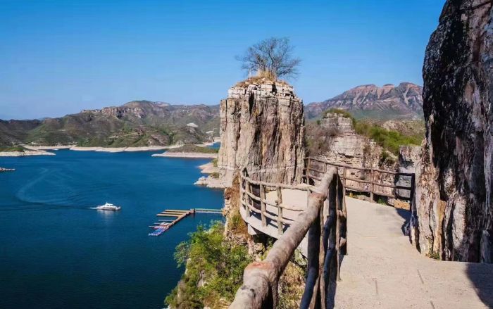 登山观景游:下船后,可以选择登山观景。沿着山路拾级而上,可以欣赏到不同的风景和地貌。在山顶俯瞰整个易水湖景区,景色更加壮观。